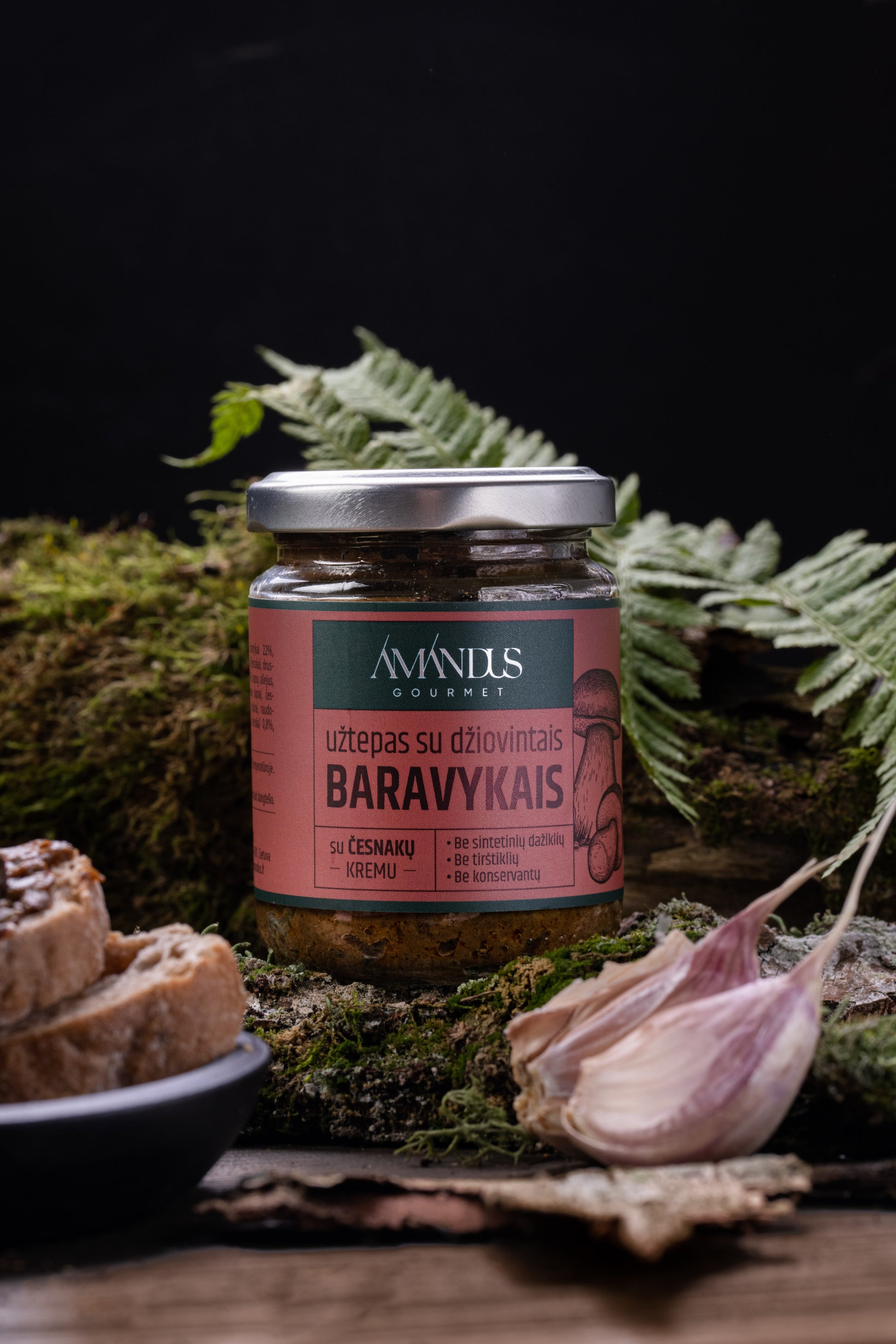 UŽTEPAS SU DŽIOVINTAIS BARAVYKAIS IR ČESNAKŲ KREMU