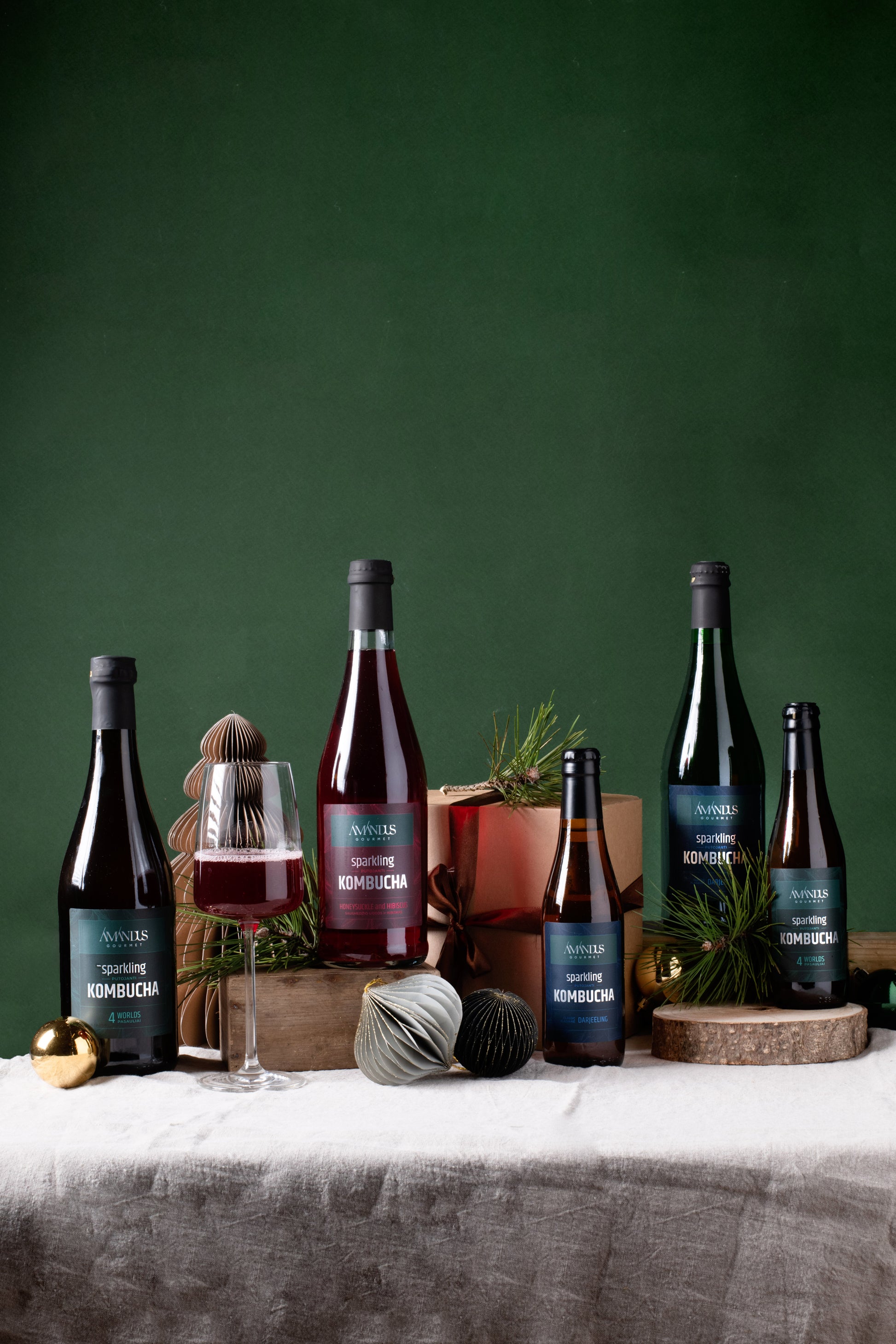 Vanduo, kombučios kultūra, cukrus, Dardžilingo juodoji arbata (0.22%), anglies dioksidas