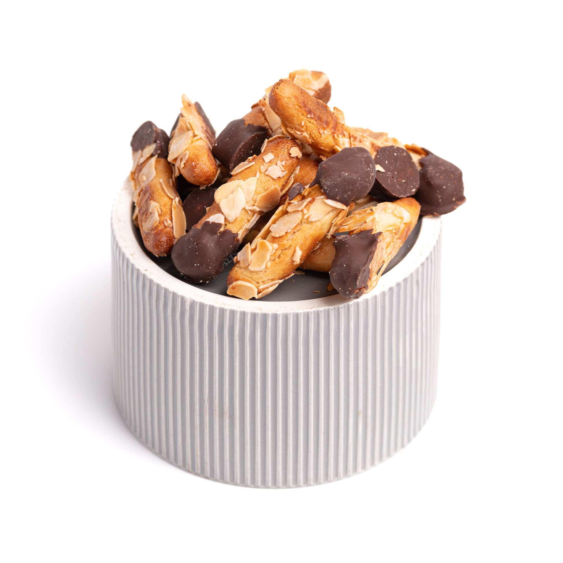 Marcipanas, migdolų miltai, kiaušinių baltymai, cukraus pudra, vanilė, citrinos sultys, migdolų drožlės, juodas šokoladas.